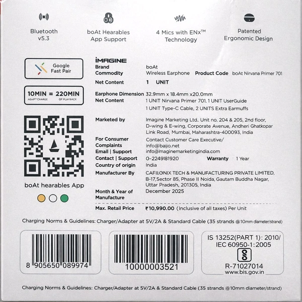 🎧 1 × Pair of boAt Nirvana Primer 701 Earbuds