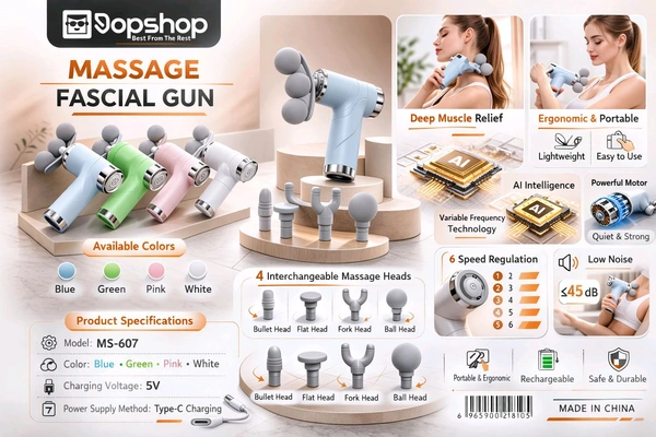 Experience professional muscle relaxation at home with the Dopshop Massage Fascial Gun MS-607. This powerful deep-tissue massager helps reduce muscle stiffness, relieve body pain, and improve recovery after workouts or long working hours.