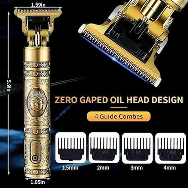 Experience salon-quality grooming at home with the Buddha Hair Trimmer. metal Body rafted with a stylish metallic antique finish and a powerful motor, this cordless hair clipper is ideal for precision trimming of beard, hairlines, necks, and more. Its Zero Gapped Oil Head Design ensures clean, close cuts without pulling or skin irritation, making it perfect for both professionals and personal use.