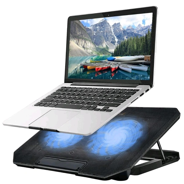 Laptop Cooling Pad / Dual Fan / Adjustable Height & Angle / USB Powered / Silent Operation / Fits 12″–15.6″ Laptops / Anti-Slip Design / Portable & Lightweight