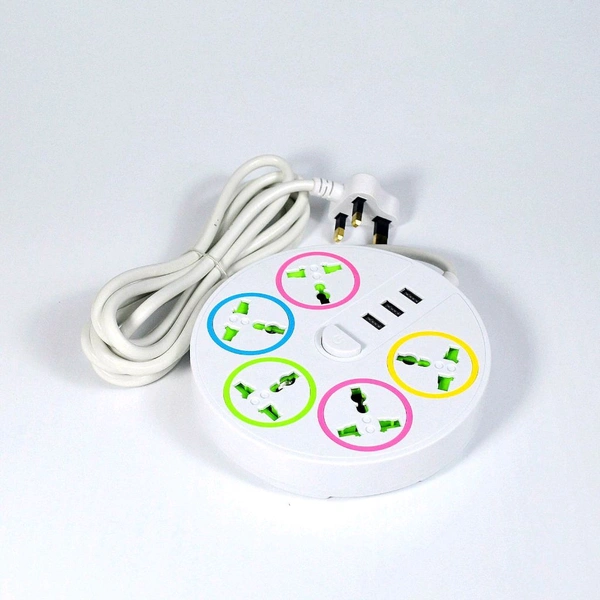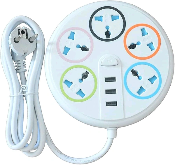 Compact power extension board with 4 universal sockets and 3 USB ports, allowing safe and convenient charging of multiple devices at once—ideal for home, office, and everyday use.