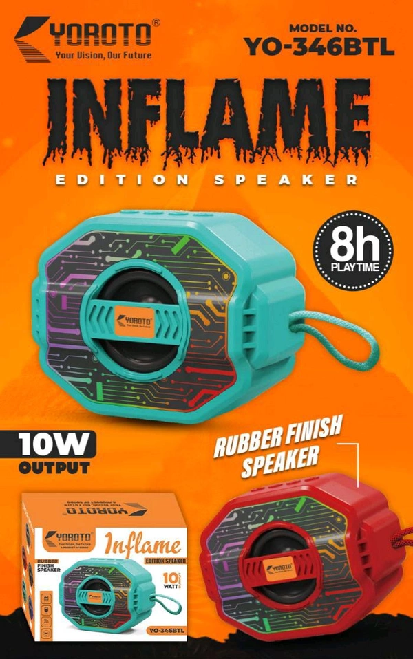 Crafted with a solid body and premium rubber finish, the Yoroto Inflame is not only stylish but also durable, offering a comfortable grip and enhanced protection. Its Bluetooth connectivity ensures seamless pairing with your devices, making it the perfect companion for home, travel, or outdoor adventures.